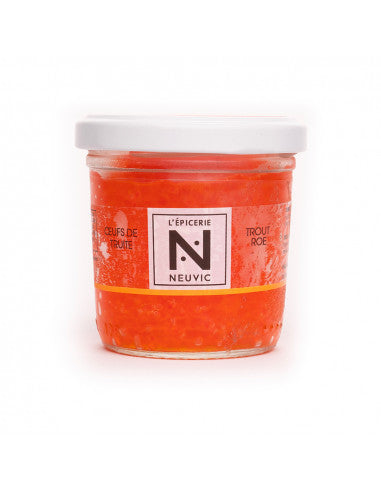 Leur taille est plus petite et leur texture plus croquante que les œufs de saumon. Les oeufs sont récoltés frais avant d'être salés et fumés au sein de notre atelier à Neuvic. Un savoir-faire délicat afin de préserver la saveur délicate des œufs de truite.