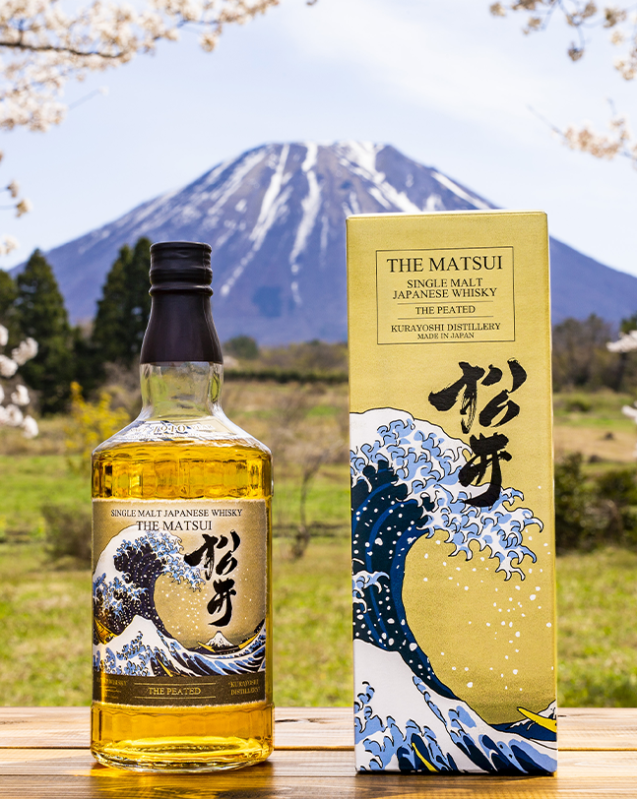 Élaboration: The Matsui The Peated est un Single Malt distillé par la distillerie Kurayoshi, située en préfecture de Tottori. Une attention particulière a été apportée lors de la sélection de l’orge maltée qui fut tourbée. Le maître distillateur "Matsui Shuzo" a sélectionné avec une attention particulière l'orge maltée tourbée. Le whisky est vieilli dans des fûts de chêne américain, puis il est réduit avec de l’eau de source naturelle provenant du Mont Daisen. Il offre des notes fruitées avec une finale fumée. L'illustration sur la bouteille représente "La grande vague de Kanagawa” de Katsushika Hokusai.